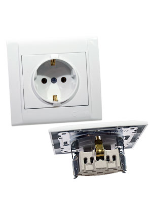 42001008, Розетка одинарная 1 м с/з керамика белый встр. монтаж