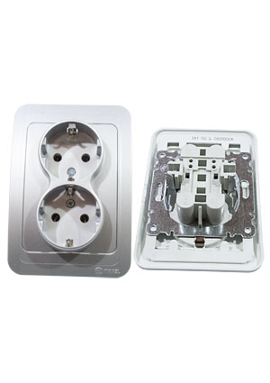 23482, Розетка двойная 2 м с заземлением серебро встроенный монтаж