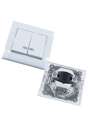 42001023, Выключатель 2 кл с подсветкой встроенный монтаж
