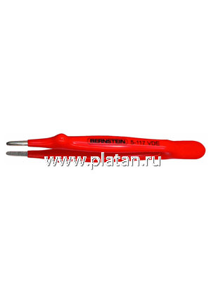 5-117 VDE, Пинцет высоковольтный прямой плоский с насечкой, 145 мм