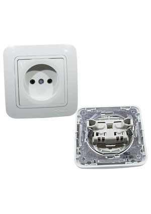 • 70022, Розетка одинарная 1 м без заземления  белый встроен. монтаж