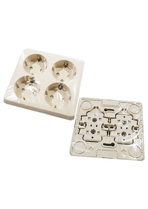 PA16-208K, Розетка 4 м с/з со шторками кремовая. накладной монтаж