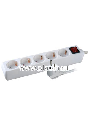 S5x3-ZDV, Удлинитель сетевой, 5 розеток, заземление, выключатель, защита, 3м