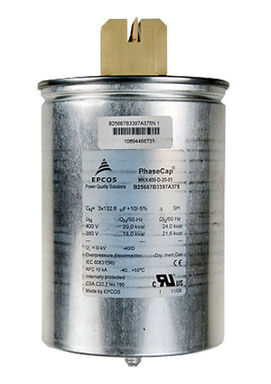 • Трех- и однофазные конденсаторы EPCOS-TDK серии PhaseCap были специально разработаны для применения в низковольтных установках компенсации реактивной мощности. Газонаполненные МКК АС конденсаторы EPCOS-TDK (мощностью от 5,2 до 33,0 кВар на номинальные напряжения 230, 400, 440 и 525 В) увеличивают плотность монтажа конденсаторных установок. Данные конденсаторы надежны в работе, допускают монтаж в любом положении, полностью экологически безопасны.