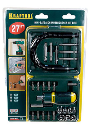• 25556-H27, отвертка реверс. с битами и торц.головками 27предм.