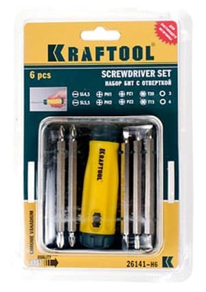 26141-H6, отвертка реверс. в мини-боксе 6предм.(длин.биты)