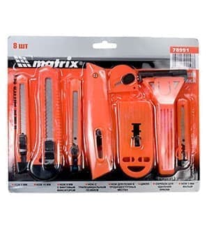 • 78991 НАБОР НОЖЕЙ, выдвижные лезвия,9мм-4,18мм-2,+скребки выдвиж.лезв.