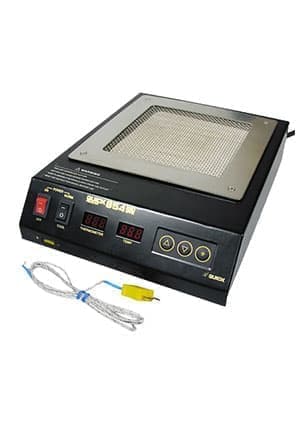 • Инфракрасный термостол с керамическим нагревателем предназначен для предварительного нагрева и выпайки печатных плат. Рабочая температура выбирается сенсорными кнопками и отображается на цифровом дисплее. Точность температурного нагрева не превышает 1оС. Конструкция устройства защищена от зарядов статического электричества. Рабочая область 130х130 мм. Температурный диапазон 50…350о. Мощность 600 Вт.